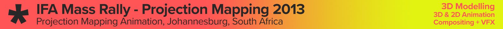 Chad Bell was commissioned by The African Motion Picture Company to create the full 3D Environment and Animation for The IFA Mass Rally 2013 to 6000 IFA delegates in Johannesburg, South Africa. This was a full Projection Mapping Production which included the planning and of all scenes to work seamlessly with the Stage Set which was the base for the Projection Mapping.